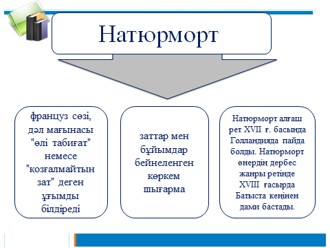 −Натютморт дегенді қалай түсінеміз? (мұғалім натюрморт туралы сұрайды)