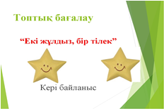 Әр топтың баяндамашысы өз бақылау нәтижесімен таныстырады. Бағалау: « 2 жұлдыз,бір тілек »