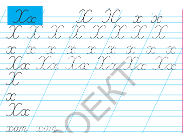Жеке жұмыс Дәптермен жұмыс Х әрпін жазу үлгісі (бейнекөрініс) Х ның үлкен әрпі мен кіші әрпін үлгі бойынша жаз.