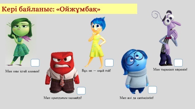 Ойжұмбақ кейіпкерлерінің тұсына белгісін салады.