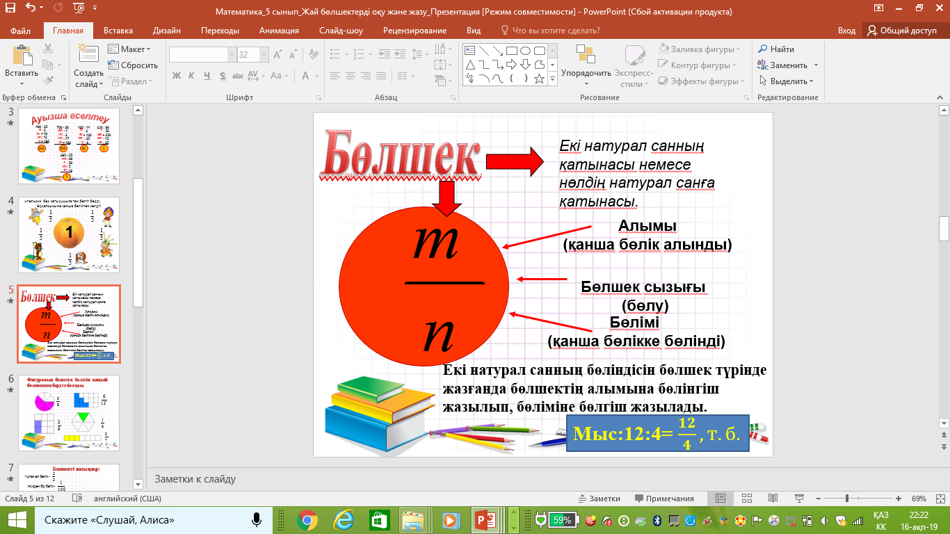Жай бөлшек. Жай бөлшектерді оқу және жазу. |