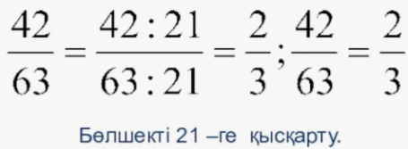 Дескрипторлар: - Ортақ бөлгішті табады; - Алым мен бөлімді бірдей санға бөледі; - Ең ықшам түрге келтіреді |