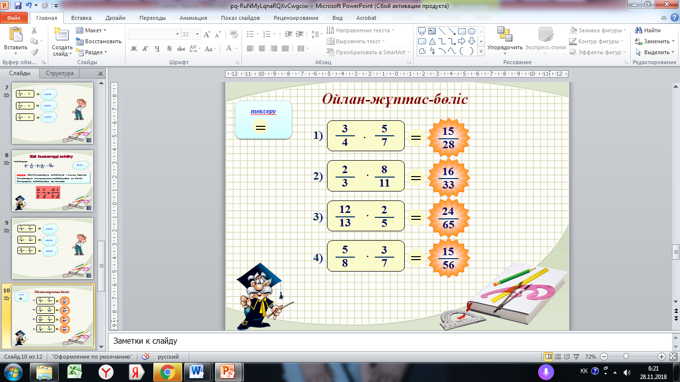 5.1.2.21 Жай бөлшектерді, аралас сандарды көбейтуді орындау |