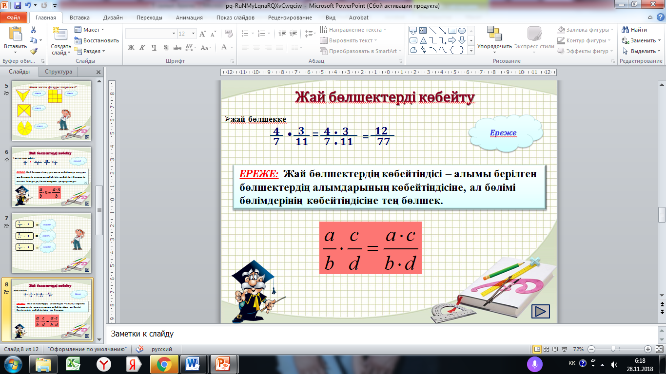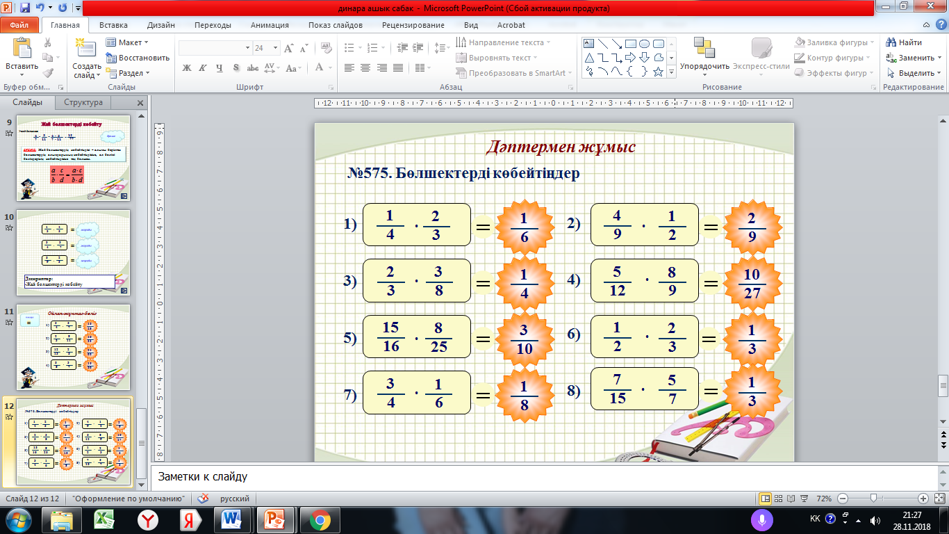 Ашық сабақ "Жай бөлшектерді және аралас сандарды көбейту" 5 сынып