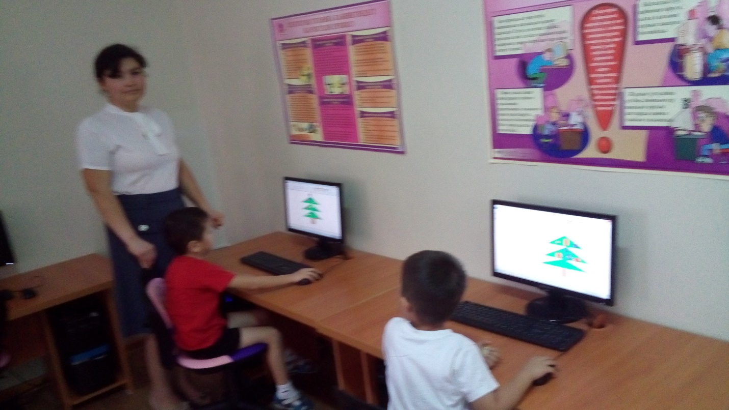 Мақсаты: Балаларды компьютерді еркін пайдалануды үйрету. Компьютерде сурет салдыру арқылы, балалардың информатика оқу іс – әрекетәне сүйіспеншілікті ояту. Қойылған сұрақтарға дұрыс жауап беруді, логикалық ойлауды, түстерді үш тілде атап білуі, шығармашылық қабілетін дамыту.