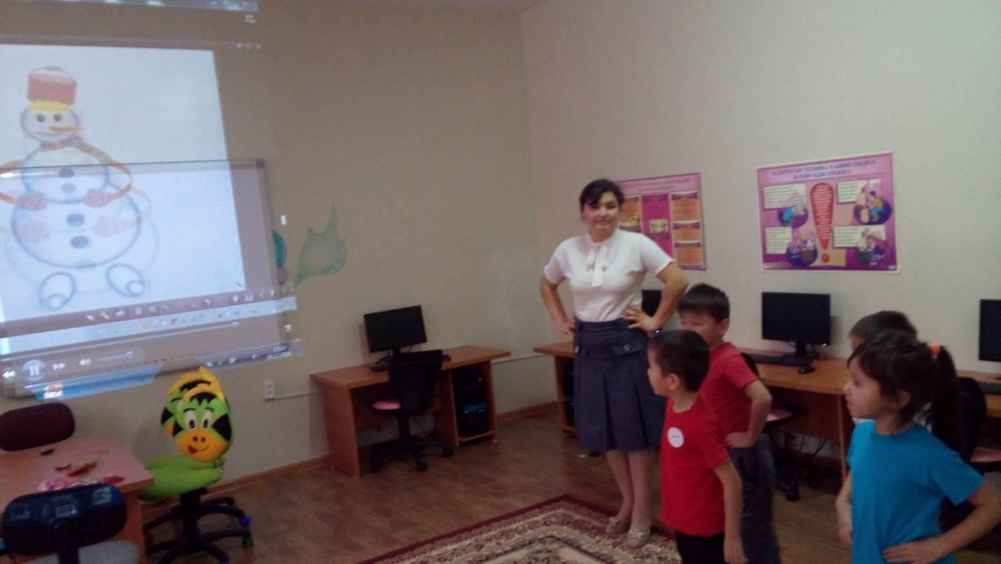 Педагог: Дұрыс айтасыңдар. Балалар Жаңа жыл жақындап қалды, ал біздің компьютерлерлеріміз Жаңа жыл мерекесіне дайын емес. Балалар менде бір ой бар, біз Жаңа жыл мерекесіне орай бір керемет сурет салайық, сонда біздің компьютерлеріміз көңілді әрі әдемі көрінереді.