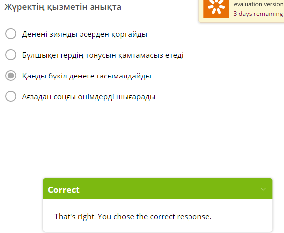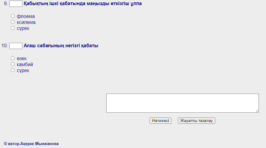 ҚБ: Тест нәтижесі экран бетіне көрсетіледі. |