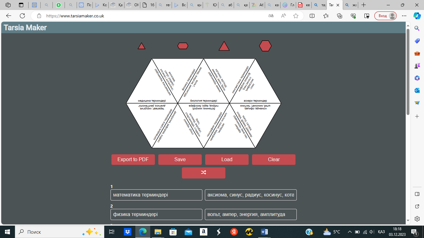 3-тапсырма Топтық жұмыс: Тарсия макеті (tarsiamaker.co.uk) әдісімен топтық жұмыс орындату.