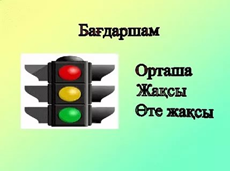 «Бағдаршам» әдісі қызыл түс- орташа түсіндім Сары түс- жақсы түсіндім Жасыл түс- өте жақсы түсіндім