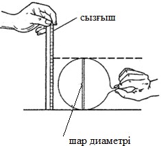 Теннис добы мен үрленген шарды үстел үстіне қойып, сызғыш арқылы суреттегідей, әрқайсының диаметрін анықтайды.