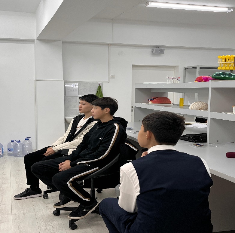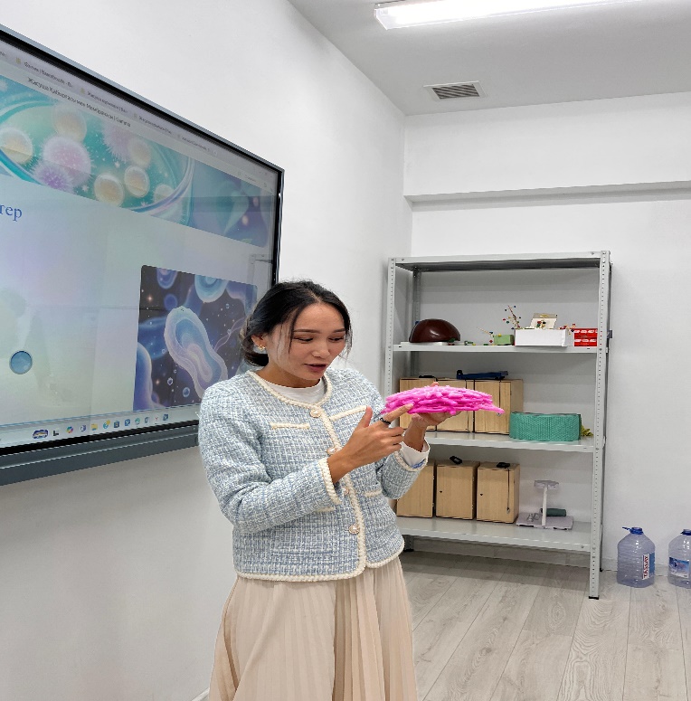 Мұғалім келтірген деректерді қысқыша дәптерге жазып алады. 3д очки арқылы жасушаны көреді. |