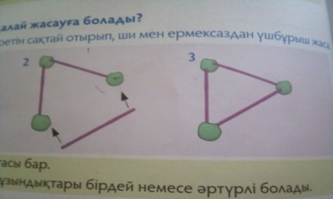 Барлық оқушылар :Жазық фигураларды ажыратады,атайды,қоршаған ортадағы заттармен сәйкестендіреді,ортақ қасиеттерін айтады. Көптеген оқушылар:Фигуралардың ортақ қасиеттерін түсіндіреді. Кейбір оқушылар :Берілген таяқшалардан жазық фигураларды құрастыра алады. . |