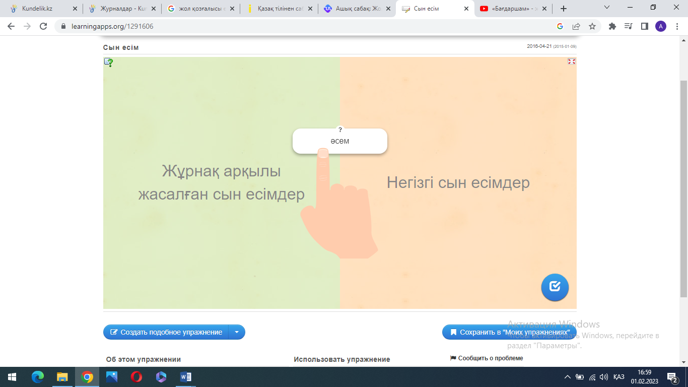 Сабақты қорытындылау 5 мин «learningapps» сайты Балалардың сабақта алған білімдерін тексеру.