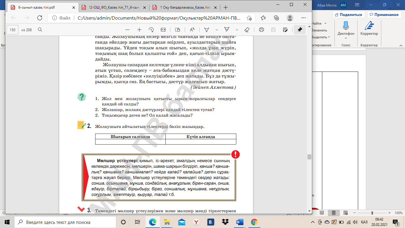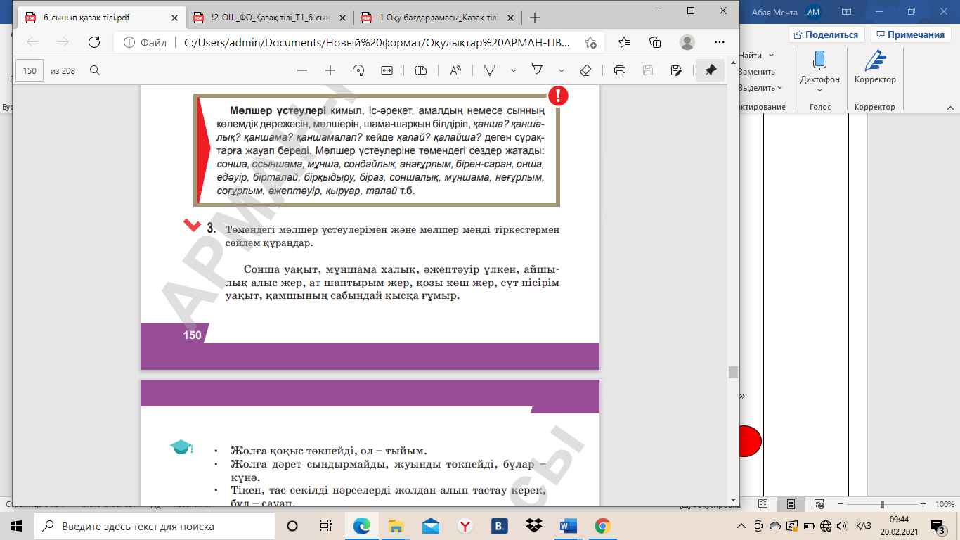 6.2.6.1 оқылым стратегияларын қолдану: жалпы мазмұнын түсіну үшін оқу, нақты ақпаратты табу үшін оқу; 6.4.4.3. үстеудің мағыналық түрлерін ажырату, синонимдік қатарларын түрлендіріп қолдану. |