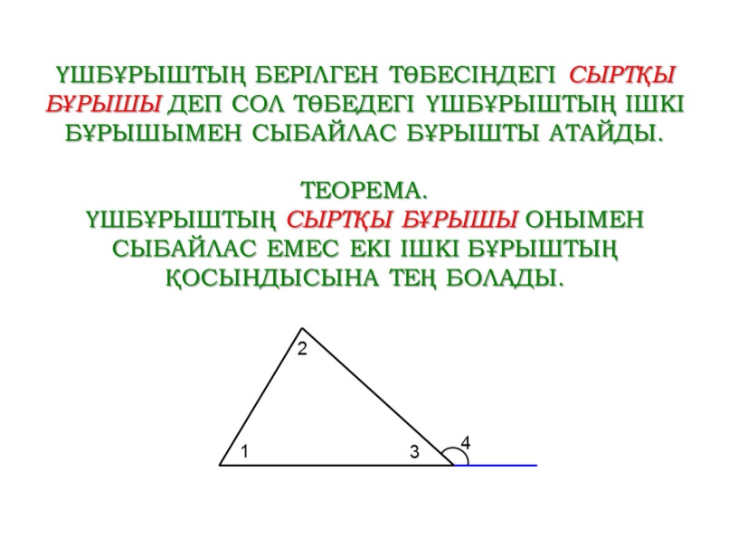 Үшбұрыш бұрыштарының қосындысы. Үшбұрыштың сыртқы бұрышы |