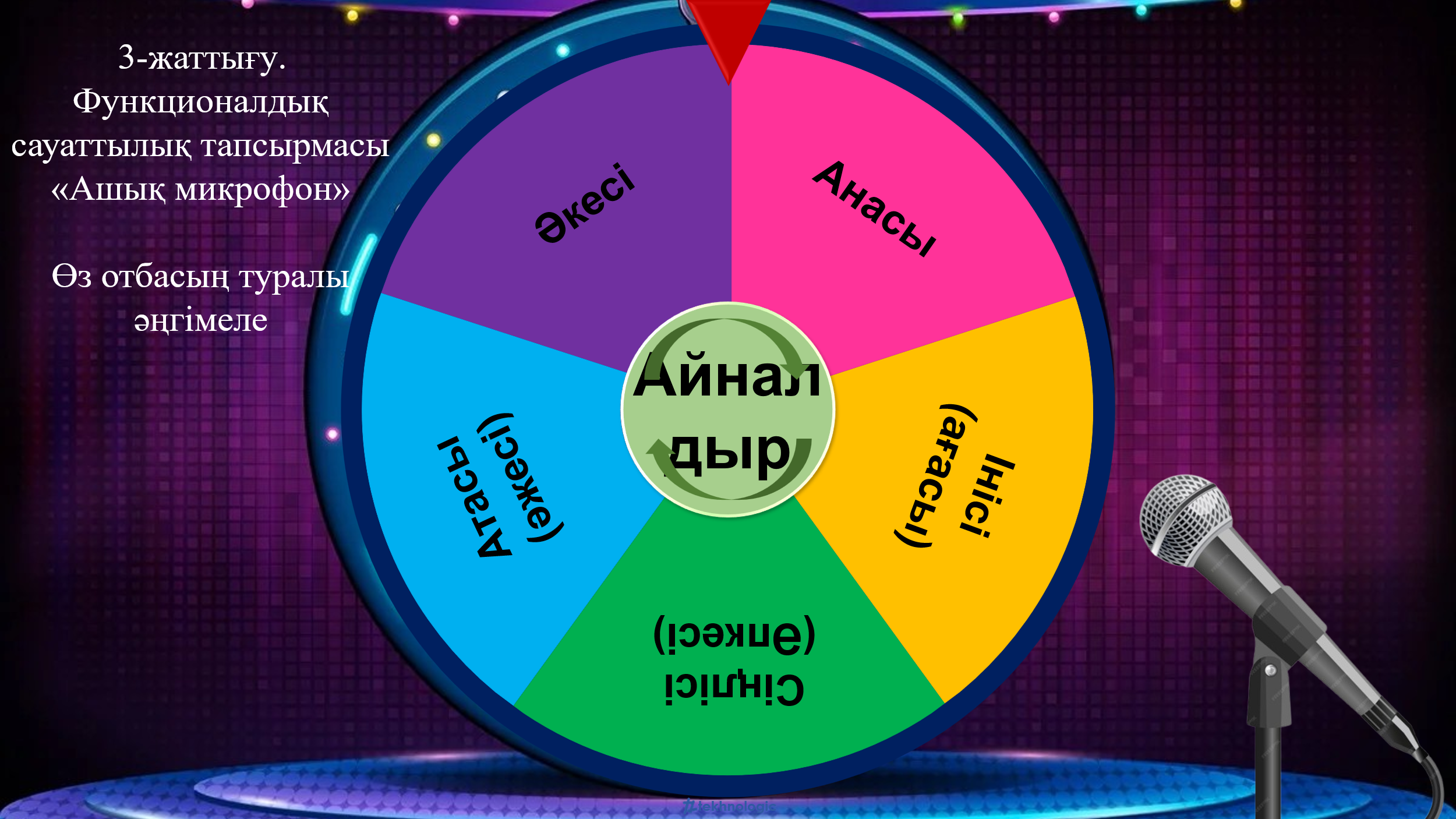 Оқушылар экрандағы бейнені түрту арқылы мұғаліммен амандасады, тағы түртіп эмоциясын көрсетеді, тағы түртіп топқа бірігеді Оқушылар өткен сабақтарды еске түсіріп, сұрақтарға жауап береді Өз ойларын айтады Мұқият тыңдайды Оқулықтағы мәтінді мәнерлеп оқиды, бірінен-кейін бірі Мұқият тыңдайды Сұрақтарға жауап береді Мұғалімнің қолдауымен мәтіннің, сюжетті суреттің мазмұны бойынша реттілігін табады. Қимылды қайталайды Мақалды көркем жазады Спиннерді айналдырып, сәйкес келген сөзге отбасы туралы әңгімелейді Сөздерді тиісті киіз үйге орналастырады. Және сөздерге дыбыстық талдау жасайды Үй тапсырмасын алады Сабаққа рефлексия жасайды