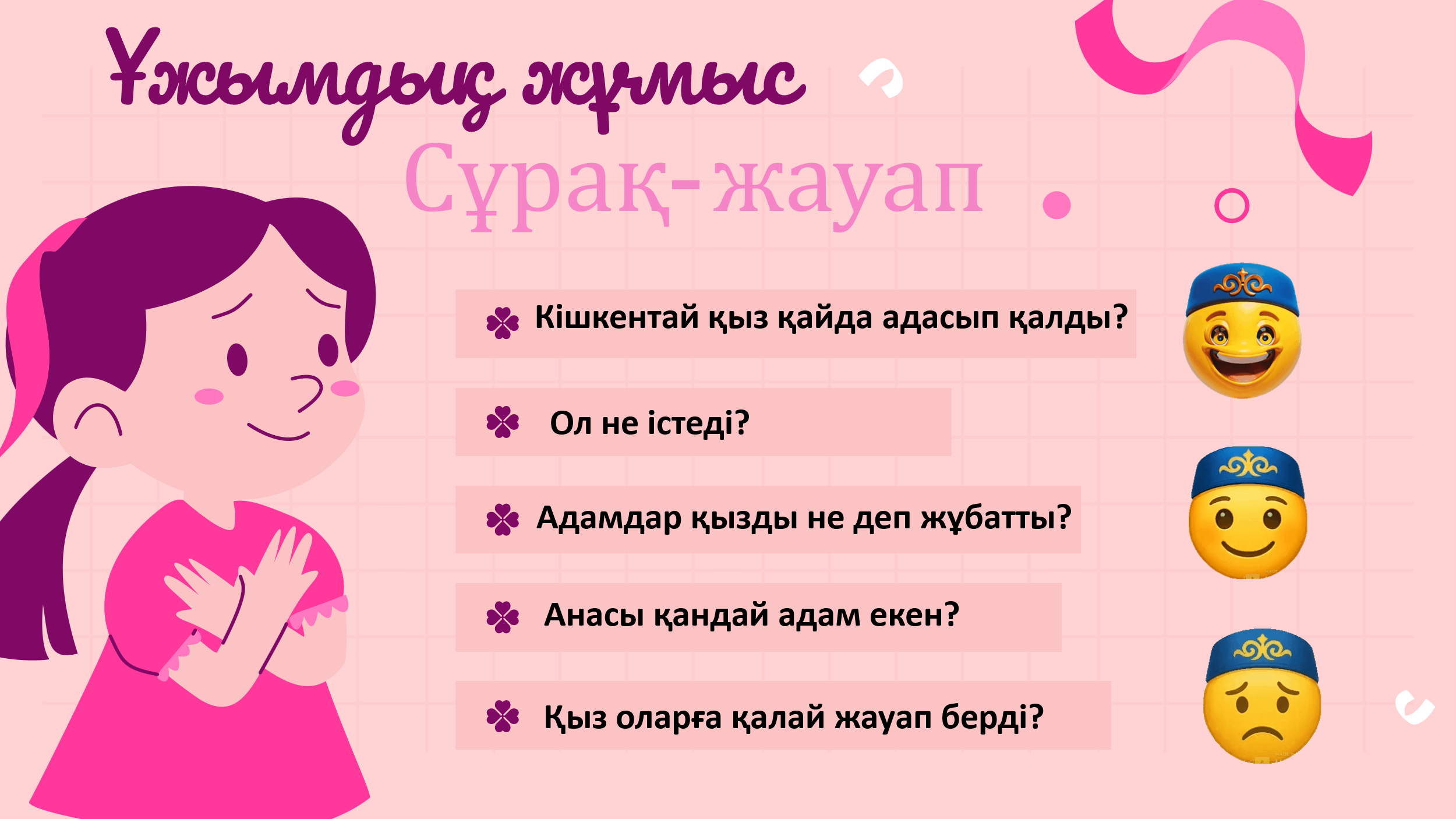 мәтіннің, сюжетті суреттің мазмұны бойынша сұрақ қою, сұраққа жауап