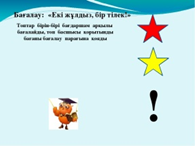 Дескрипторы: Қозғалысқа берілген есептерді шығаруды үйренді-1б Есепті ауызша есептеуді біледі-1б