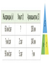 4.2.1.8**бірқалыпты түзу сызықты қозғалыстағы арақашықтық формуласын s=v•t, t=s: v, v=s:t шығарып алу және қолдану 4.5.1.2 **есептерді шығаруда жылдамдық, арақашықтық, уақыт шамаларының өзара тәуелділігін пайдалану |