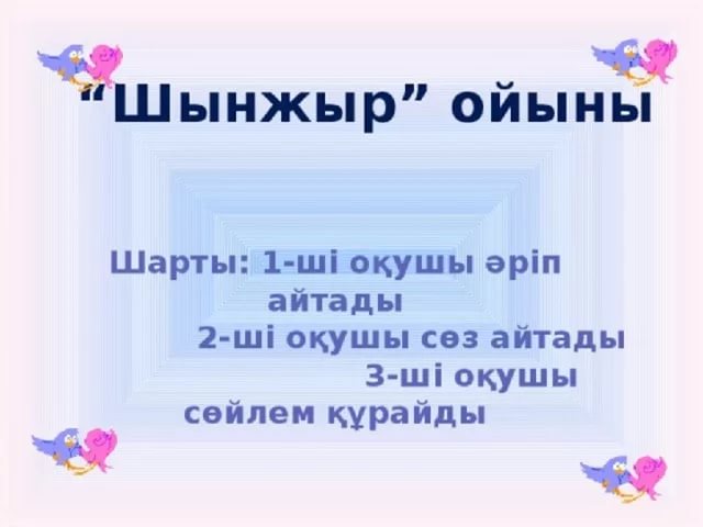 Амандасу Шаттық шеңбері (М.К.Ұ) Оқушыларды ортаға шығарып, үлкен бір шеңберге тұрғызамын. Мұғаліммен бірге өлең жолдарын қайталап,қимылмен көрсетеді. Сыныбымызға күн шуағындай жылулық таратып, жарық беру үшін, бір – бірімізге жүректен шыққан жылы сөздерімізді арнайықшы. Біздің күлкіміз көңілді, (қолдарын еріндерінің шетіне жақындатады) Жеткізсін жылу мен шаттықты. (қолдарын жүректерінің тұсына қояды) Бөліскен жақсы ғой өмірде, (қолдарын алға созады, саусақтары күн сияқты) Қуаныш, мейірім, бақытты. (қолдарын екі жаққа созады). Көңіл-күйімізді бейнелейік Қасыққа фломастермен смайлик түрінде көңіл күйін бейнелеу "Бұрыштар" тәсілі Ботаға көмектесейік Сыныптың әрбір бұрышына және жарға әріптер ілініп тұрады. Әрбір оқушыға әріп айтылады, оқушылар тиісті әріптің қасына барып тұрады.