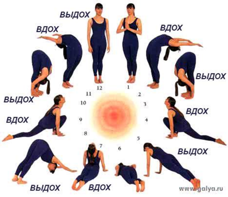 1.Тыныс алу жүйесін қалпына келтіру жаттығуы: «Күнге сәлем беру» жаттығуы. Бұл созылу жаттығулары дене икемділігін және иілгіштік қозғалыс қабілетін жетілдіреді, сонымен қатар тыныс алу жүйесін қалпына келтіреді.. Жаттығуды орындау 2-3 минутқа созылады.