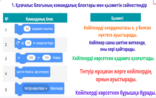 Сабақтың мақсаты -Scratch ортасында кейіпкерлердің қозғалысын ұйымдастыруды үйренеді.