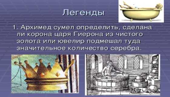 1 тапсырма. Қалай Архимед Сиракуз патшасының тәжінің алтыннан жасалғанын немесе алтын еместігін анықтады?