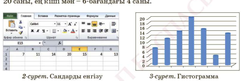 1-Мысал 7, 11, 14, 20, 15, 14, 1 5 сандары берілген. Осы сандардың арасынан ең үлкен, ең кіші мәндерді визуалды түрде бірден ажырататындай диограмма құрайық.