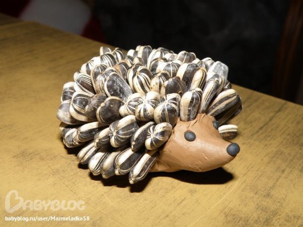Кірпіні табиғи материалдан жасау жолдары: кірпі жасау үшін қара шекілдеуік,ақ ермексаз, жүгеріні таңдап аламыз; аң ермексазды қолданып кірпінің денесін жасаймыз; жасалынған кірпінің денесінің үстінен шемішке дәндерін қадаймыз; кірпінің көзі мен тұмсығына жүгері немесе қара түсті ермек сазды пайдаланамыз. |