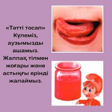 Сабаққа дайындық. Психологиялық ахуал қалыптастыру. Арайлап таң атты, Алтын шуақ таратты. Саламатсыздар ма, шәкірттер, Саламатсыз ба, ұстаз! Амандасу. -Қандай әдепті, тәртіпті шәкірттер! Осы аптаның дәйексөзін еске түсірейікші. Жасампаздық – бәрімізге өнеге -Мінеки, осындай керемет тәртіп пен алған білімдеріңізбен, тәрбиелеріңізбен жасампаздыққа, жаңашылдыққа ұмтылайық! Ширату. Ми жаттықтыру. Нейрожаттығу. Үй тапсырмасын сұрау: Тышкан кыздын жолынын сызбасы бойынша мазмұнын айтқызу. Ертегі қалай аяқталды? Ертегі жағымды аяқталды,ханшайым адам қалпына келді.Маған ертегі ұнады.Ханшайымның жаман әдеттен арылу қиын,бірақ қызық болды. Ертегі мазмұны бойынша кандай макал айтуга болады? Өзіңнің бойыңдағы қандай зиянды әдеттерден арылғың келеді? Мен өз бойымдағы жалқаулықтан арылғым келеді. Газ сусындарын ішуден арылғым келеді. Тез дайын болатын тағамдарды жеу әдетінен арылғым келеді. Жаман әдеттерден арылып,жақсы әдеттерді бойларыңа сіңіріп өссеңдер болашақтарын жарқын болады. Құндылық мақсаты: Алдына қойған мақсатына жете білуге үйрету Жаңа тақырып «Болжау» әдісі. Сабақтың тақырыбын ашу, мақсатымен таныстыру. Құндылық мақсаты: Дәрумендер пайдасы. «Баланың ойы» әдісі. -Адам денсаулығына не пайдалы? -Дәрумендерді қайдан аламыз? Көгөніс деген не? Жеміс деген не? Жемістер бақшада ағашта өседі,көкөністер бақта жерде өседі. Автормен таныстыру ЖҰМАКҮЛБАЕВА ЖАДЫРА СЕРІКБЕКҚЫЗЫ– журналист, Қазақстан Жазушылар Одағының мүшесі. 1983 жылы 4 қарашада ШҚО Абай ауданы Қарауыл ауылында дүниеге келген. 2000 жылы Қарауыл гимназиясын бітірген. 2000-2004 жж. әл-Фараби атындағы Қазақ Ұлттық университетінің журналистика факультетін, 2004-2006 жж. магистратурасын үздік дипломмен тәмамдаған. Оқулықпен жұмыс. Өлеңді рөлге бөліп оқу. Балалардан кері байланыс алу. Жемістерді жейміз,тосап қайнатамыз,шырын жасаймыз. Көкөністерден салат,тамаққа пайдаланамыз. Денсаулыққа қандай пайдасы бар? Дәруменге бай,дене мушелерге пайдасы зор.ауырмаймыз. (қандай дәруменге бай екенін айтып кету) Бейнематериал. (тосап жайлы) Тосап – тәтті тағам. Әр түрлі жеміс-жидектенжасалады. Алма, алмұрт, қарақат, қараөрік, құлпынай, қызанақ, сәбіз, таңқурай, тәтті шие, т.б. іріктеп алынып, суық сумен жуылып, қант қосып қайнатылады. Күнделікті өмірде аналарымыз жасайды. «Тәтті тосап»
