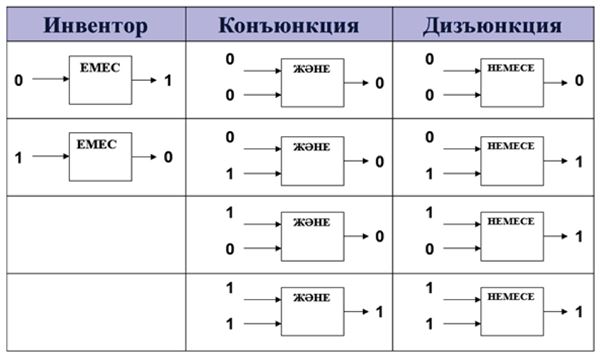 логикалық элементтердің мақсатын түсіндіру: конъюнктор, дизъюнктор,