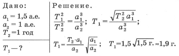 Есептер шығару. 1.Марс орбитасының негізгі осі 1,5 а.б. Күннің айналасындағы қозғалыс уақытының периодын есептеңіз.