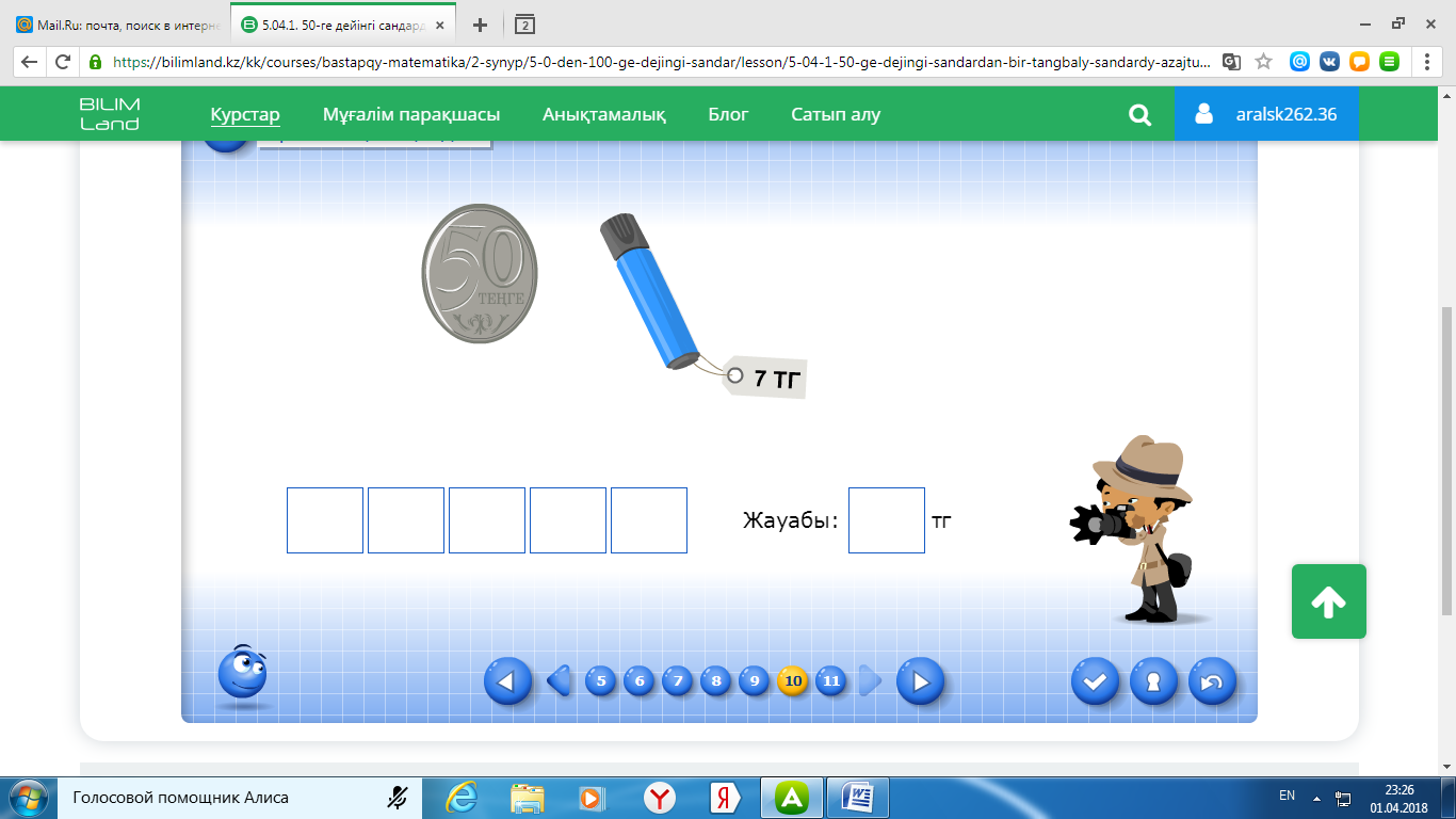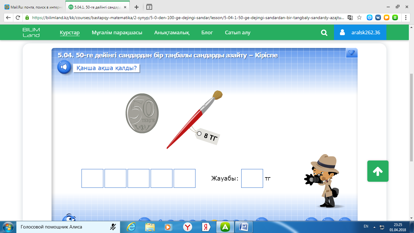 1.5.2.5 1 тг, 2 тг, 5 тг, 10 тг, 20 тг, 50 тг, 100 теңгелік монеталармен әртүрлі амалдар орындайды. Алған білімді оқушылар өмірде қолданады. Деректерді жинақтау, жүйелеу және толықтыру. |