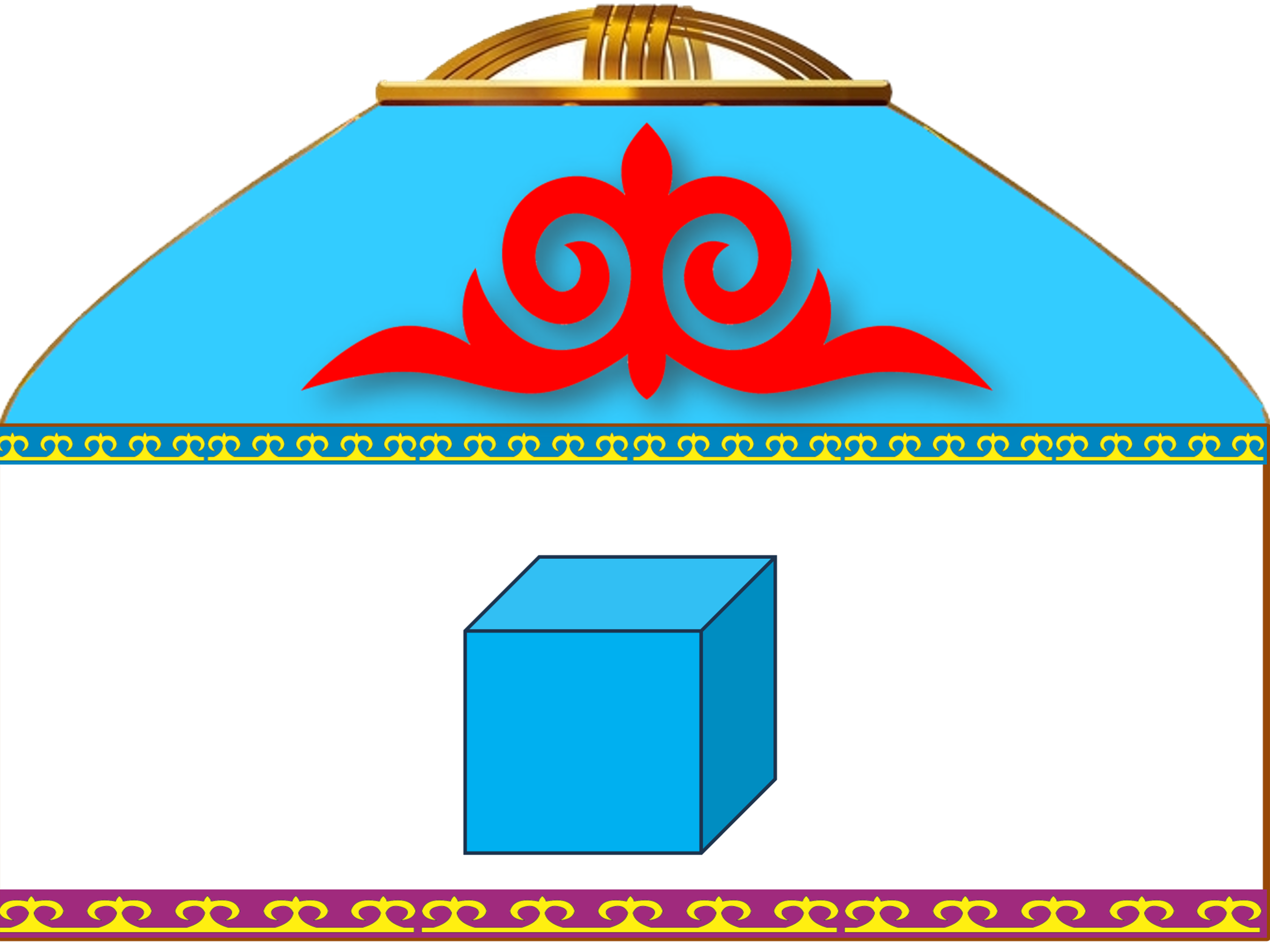 сары түстегі киіз үйге саламыз. Жақсы түсінген көк түстегі текшені