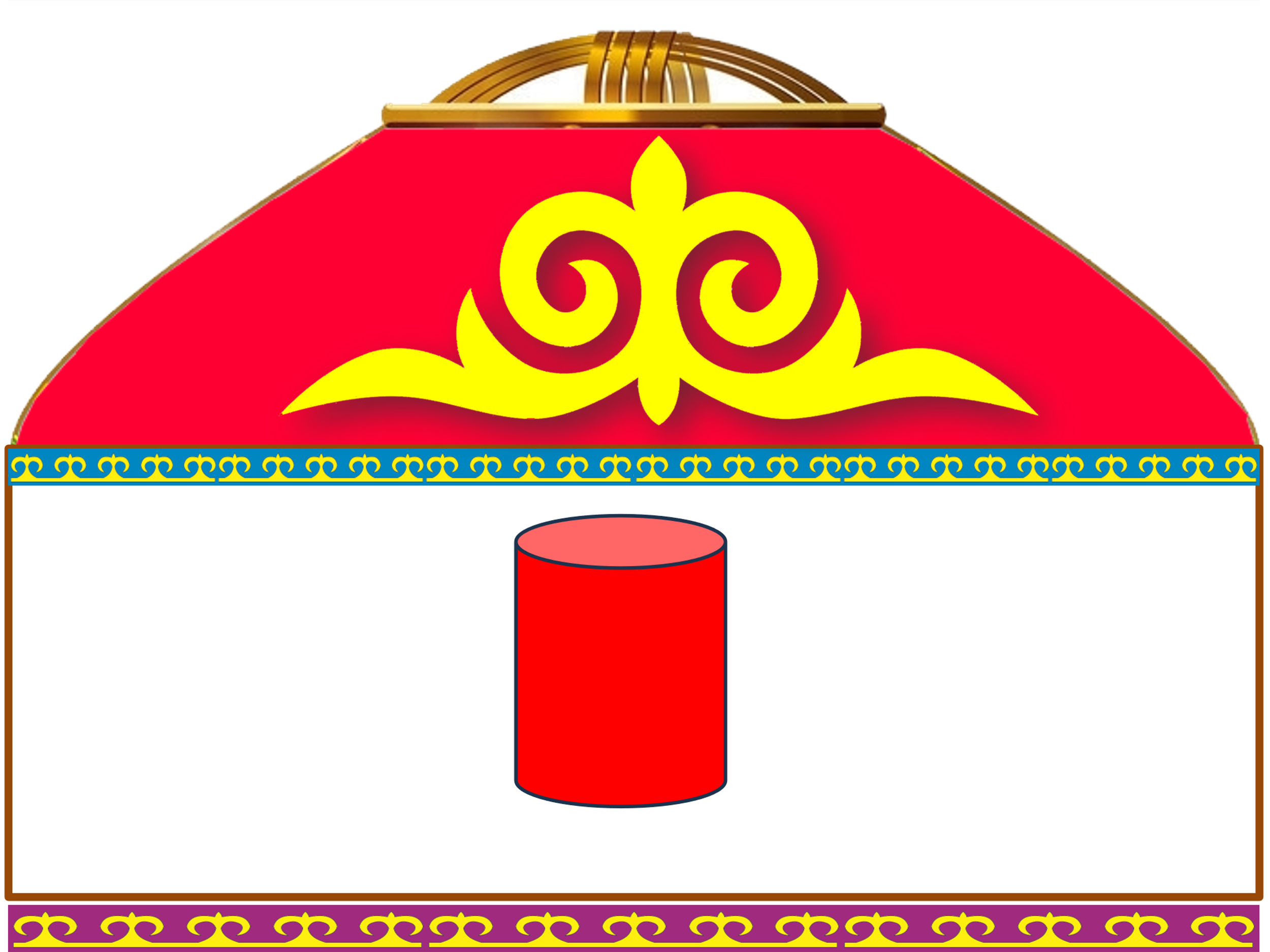 түстегі цилиндрді қызыл түстегі киіз үйге