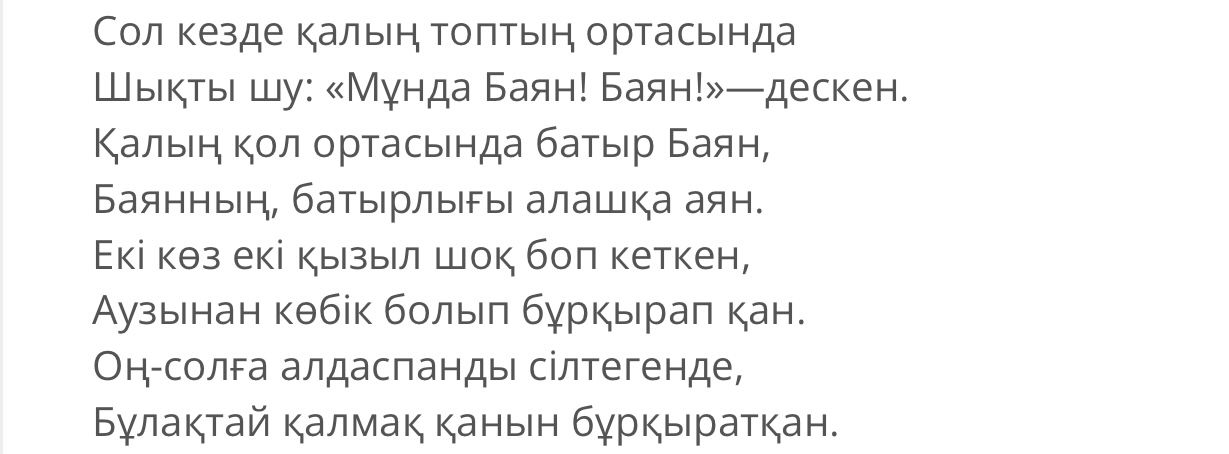 ЕББҚ тапсырмасы (ПДТ). Берілген үзіндіден Баянның бейнесін тауып айтыңыз.