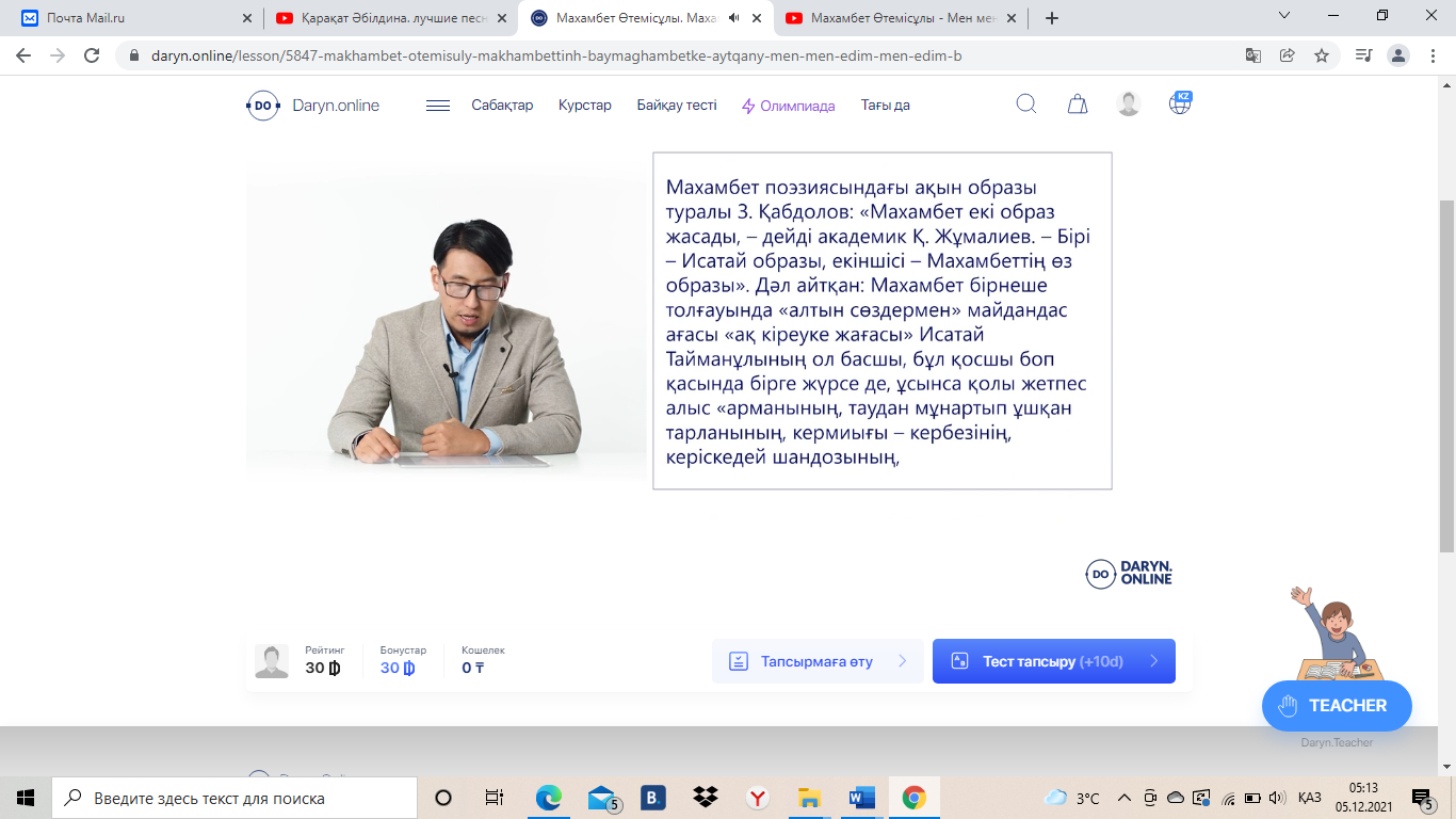 Ашық сабақ Махамбет Өтемісұлы "Мен, мен, мен едім" өлеңі