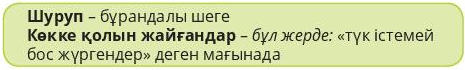 4.2.1.2* шығарманы іштей көз жүгіртіп, шолып, түртіп алып, сұрақтар қоя отырып, қажетті ақпаратты тауып, белгі қойып оқу, талдау жасап оқу, сын тұрғысынан бағалап оқу |