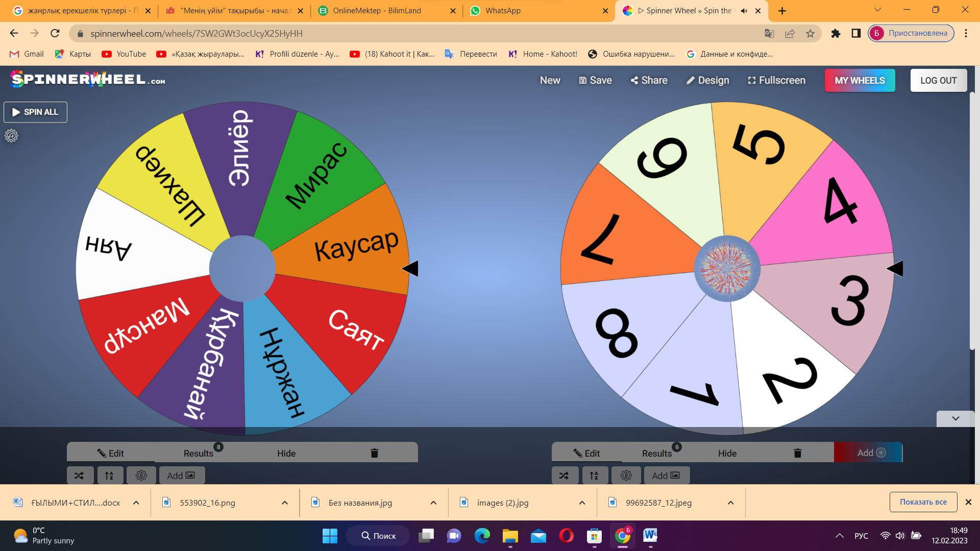 Қызығушылықты ояту Үй тапсырмасын тексеру spinnerwheel.com платформасы арқылы үлгерімі төмен оқушылардың білімін тексеру