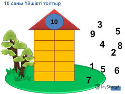 Оқу құралдарын түгелдейді. Өлең жолдарын қайталау арқылы сабақты көңіл-күймен бастайды Оқушылар топқа бірігеді. Топ ережесін тыңдайды. Өткен тақырыпты пысықтайды Балалар қатарда кезекпен бір-бірінің арқасына жазу арқылы 10 санын табады. Бейнеролик арқылы Алдаркөсенің сөзін тыңдайды. 10 санын қалай қосуды және азайтуды есіне түсіреді. 10 санын қосудың кестелік жағдайларын есінде сақтайды. Тақтамен жұмыс жасайды Мысалдар құрастырады. Сандардың құрамын жазады. Қосылғыштардың орнын ауыстырып, азайту амалымен тексереді. Сандардың құрамын естеріне түсіреді. Мысалдарды дәптерге жазып, есептейді. Кесте бойынша тексереді. Қамажай әніне оюларды қимылмен көрсету арқылы билейді Зерттеушілік тапсырма орындайды Есептеуді біледі, қолданады Қолшатыр астында кері байланыс жасайды Балалар көтеріңкі көңіл-күйде болады. |
