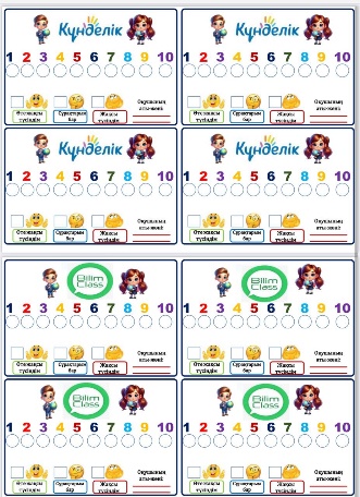 Ауызша мадақтау әдісі: Жарайсың! Тамаша! Жақсы! Оқушылар жауабын толықтырып әр қайсысына тиімді кері байланыс беріп отыру. Қб: «Күнделік кз» әдісі