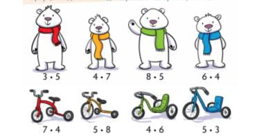 1. 4 санын көбейту және 4-ке бөлу кестелерінің құрылымын түсіну. Көбейту мен бөлудің өзара кері сипатын түсіну: көбейтуге берілген мысал бойынша бөлуге мысал құру. Бөлуге берілген мысал бойынша көбейтуге мысал құру. Көбейту кестелері туралы білімді қолдана отырып бөліндінің мәнін табу. Көбейтудің ауыстырымдылық қасиетін атау. Өз сөзінде көбейту мен бөлу амалдары компоненттерінің атауларын қолдану. |