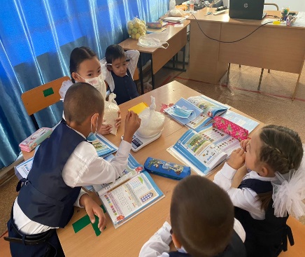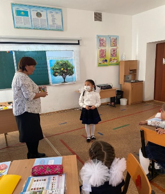 Өз білімін бағалау үшін дәптердің жиегіндегі бағдаршамды бояйды. |