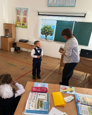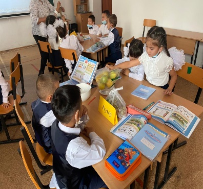Психологиялық дайындық Бір, екі, үш Бойға жинап күш Күзді қуана күтеміз. Талмай еңбек етеміз Өнімді мол тереміз Пайдасын есептеп береміз. Оқушылар үш топқа бөлініп отырғызылады. 1 топ: Ауыр 2 топ: жеңіл 3 топ: килограмм Ынталандыру Мұғалім оқушыларды жеміс пен көгөністің пайдасы туралы диалогке тартады. –Көгөніс пен жемістер қайда өседі? –Оларды жинауға көмектескен кездерің болды ма? Сырым мен Әлия осы күзде әжесіне түсім жинауға көмектесті. - Сен түсімді қалай өлшеуге болатынын білесің бе? Себет немесе жәшіктің ауыр екенін қалай анықтауға болады? |