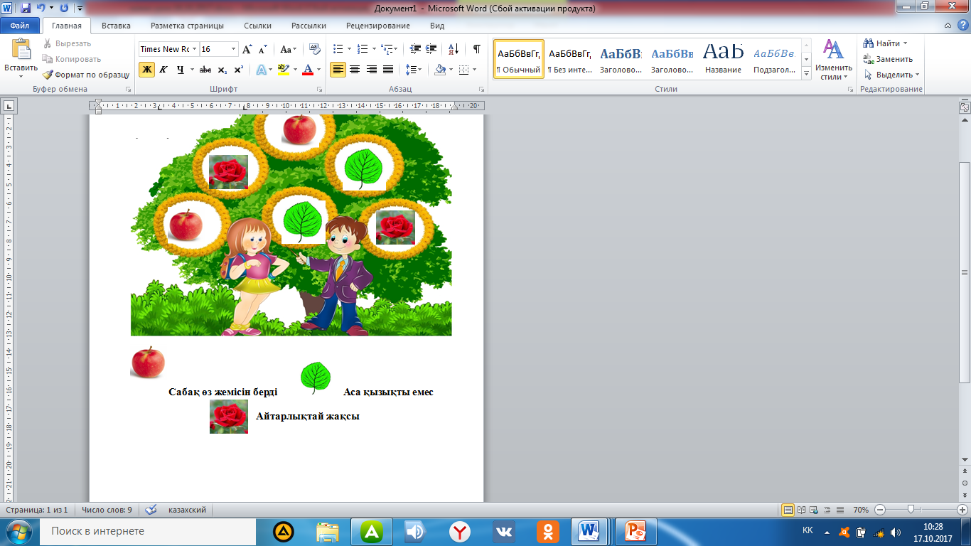 Оқушылардың сабаққа дайындығы. Сабақтың басталуына жағымды ықпал ететін көңіл күй қалыптастыру. Сабақтың тақырыбымен таныстыру. Оқушыларға 3 тілде жазылған кеспе қағаздары таратылады. Қазақша, орысша, ағылшынша жазылу бойынша 3 топқа бөлінеді. Сол сөз тіркестерінен сөйлем құрай отырып, сабақтың тақырыбын ашады.