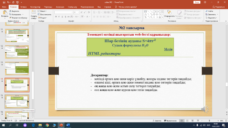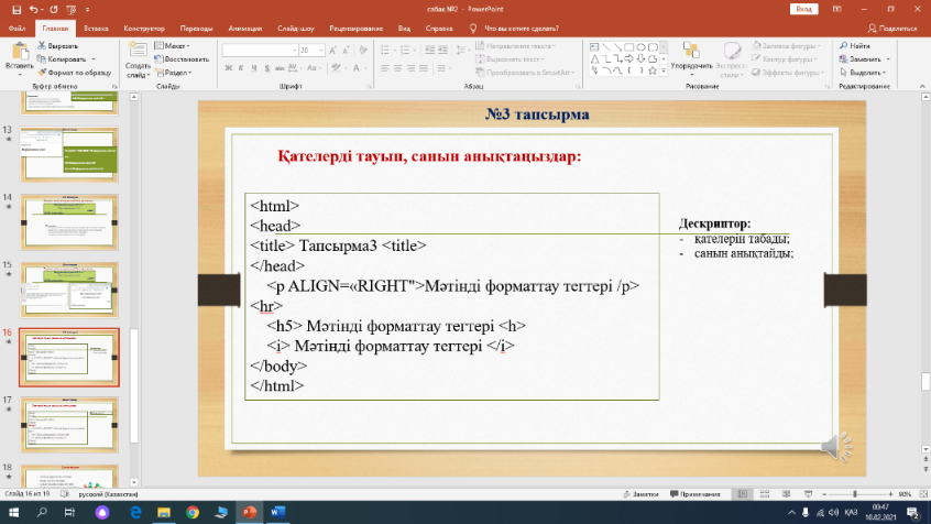 10.4.2.1 - Мәтінді форматтау тегтерімен танысып, web-парақшаларды әзірлеу.
