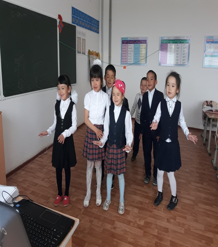 Оқушыларға көмек ретінде суреттер көрсетіледі.