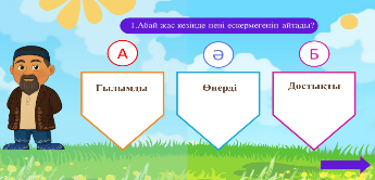 Бүгінгі сабақтан алған әсерлері туралы айтып, тиісті батырманы басып, кері байланыс береді.