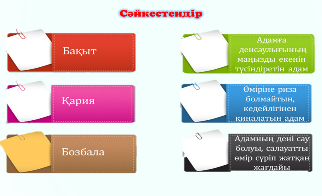 4 –тапсырма Топтық жұмыс 1 топ. Сөздер мен олардың сипаттамаларын сәйкестендір.