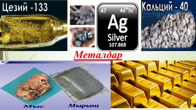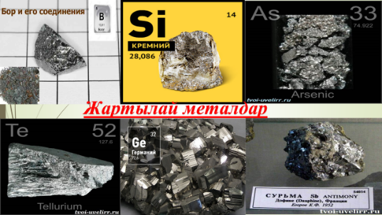 III. Жаңа сабақ Металдың және бейметалдың өнімдерінің суреті арқылы тақырыпты ашу 1.Металдар мен бейметалдар жайлы қысқаша түсініктеме беру, Металдар мен бейметалдардың периодтық жүйедегі орнымен таныстыру. Жартылай металдар туралы түсінік беру. ІV. Кері байланыс «Сайыс сабағы» Мақсаты: Оқушылардың бөлім бойынша алған білімдерін тексеру, қызықты тапсырмалар арқылы қызығушылықтарын ояту, ойлау қабілеттерін дамыту.